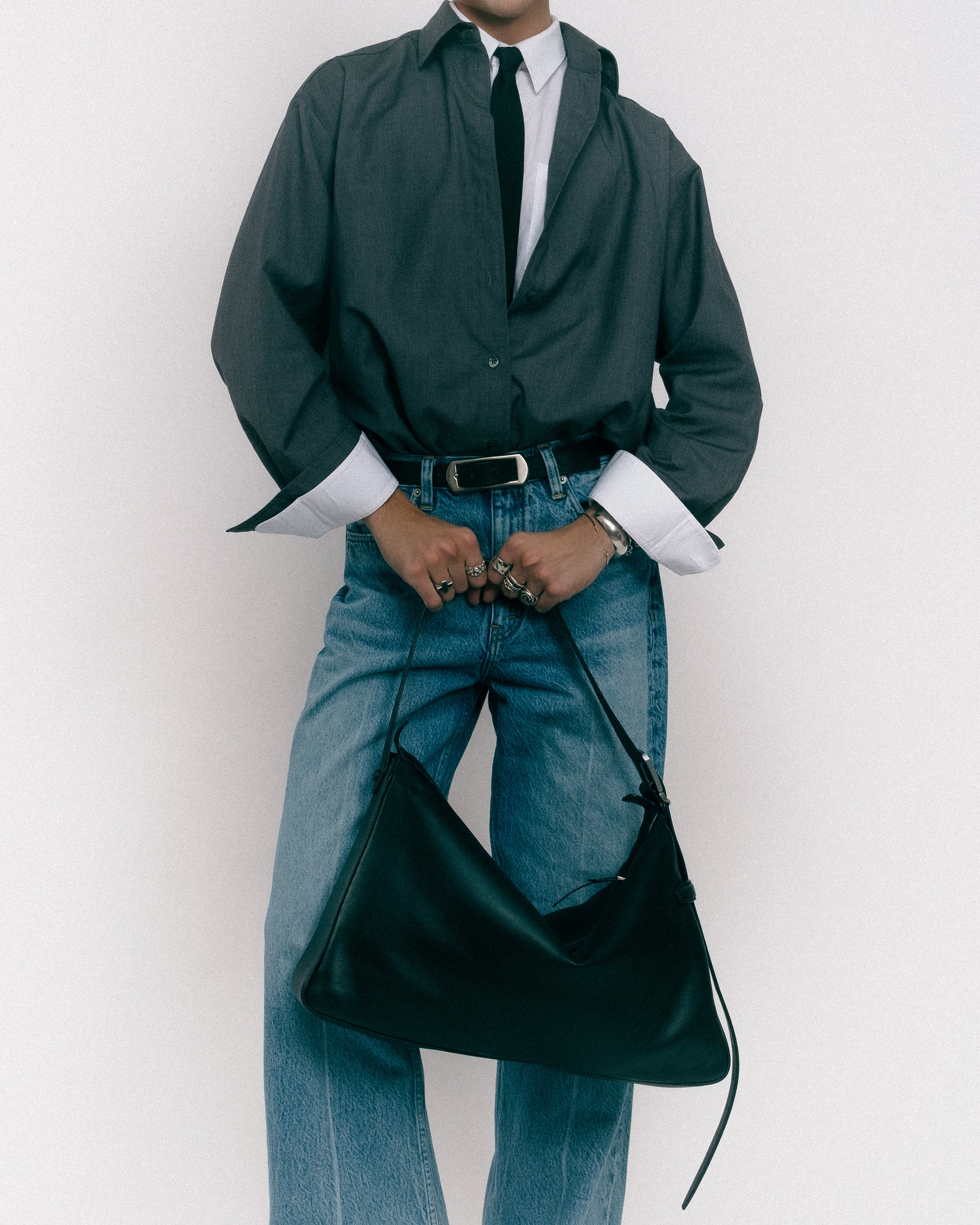 The natural beauty of the leather, soft and full of character, comes through gently in this design. Its flexible contours let the bag comfortably follow your shape. The shoulder strap, designed like a simple belt, makes it easy to adjust.